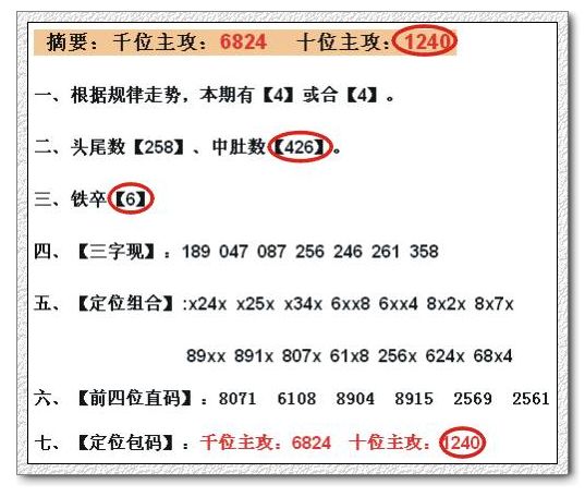 七、【定位包码】:千位主攻:1357 十位主攻:0258
