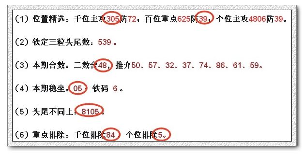 (1)位置精选:千位主攻265防78;百位重点396防57;个位主攻3849防15。