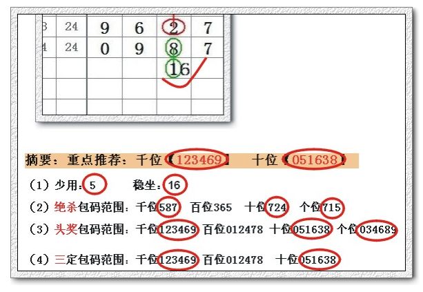 (2)绝杀包码范围:千位478 百位481 十位519 个位074