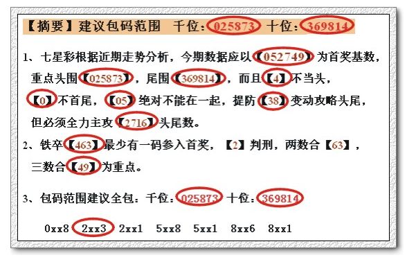 1、七星彩根据近期走势分析,今期数据应以【147692】为首奖基数,