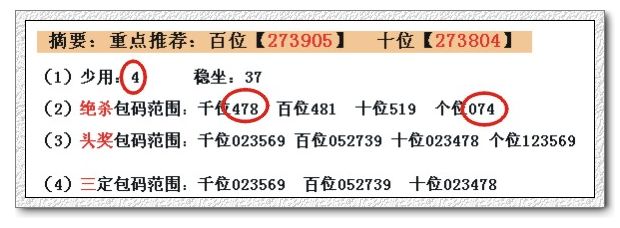 (2)绝杀包码范围:千位0519 百位7542 十位3068 个位3068