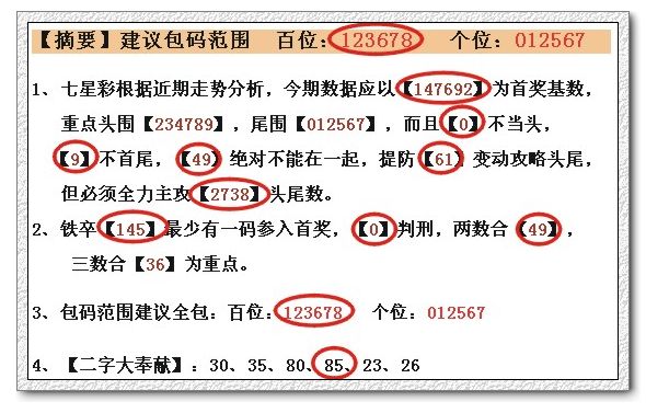 1、七星彩根据近期走势分析,今期数据应以【369814】为首奖基数,