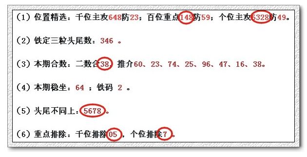(1)位置精选:千位主攻503防17;百位重点483防96;个位主攻4961防38。