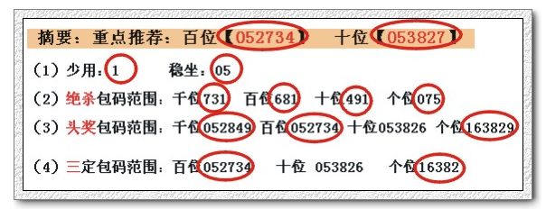 (3)头奖包码范围:千位162738 百位273849 十位052789 个位163824