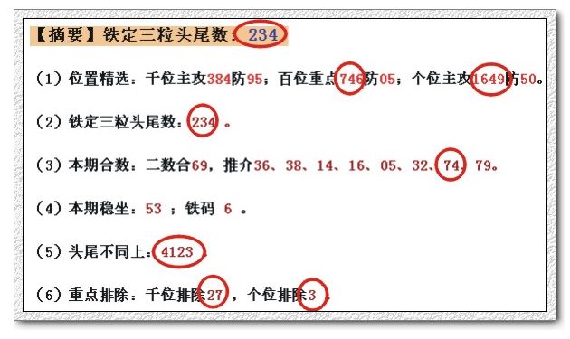 (1)位置精选:千位主攻631防49;百位重点378防40;个位主攻5289防34。