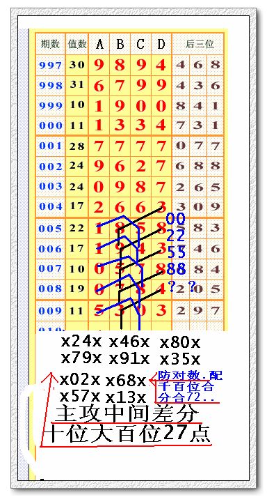 (3)、【合分】:主攻千百位合27;主攻中间差分十位大百位个27点;