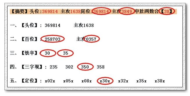 【摘要】头位:052749 主攻2749尾位:369814 主攻3849 中肚两数合【38】