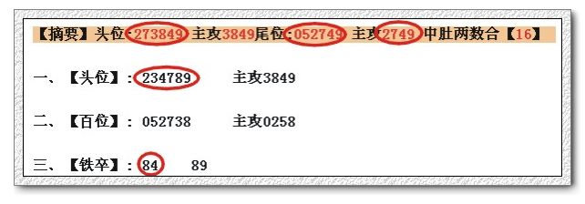 【摘要】头位:273849 主攻3849尾位:051638 主攻0168 中肚两数合【49】