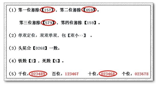 (5)千位:024569 百位:035679 十位:023489 个位:134567