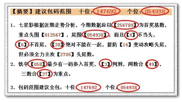 1、七星彩根据近期走势分析,今期数据应以【234789】为首奖基数,