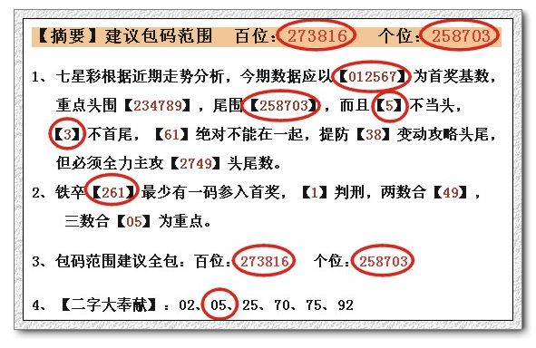 1、七星彩根据近期走势分析,今期数据应以【123678】为首奖基数,