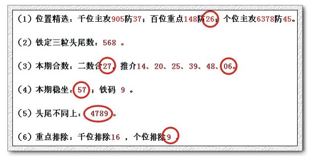 (1)位置精选:千位主攻632防59;百位重点407防86;个位主攻3846防15。