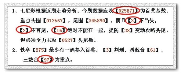 1、七星彩根据近期走势分析,今期数据应以【123678】为首奖基数,