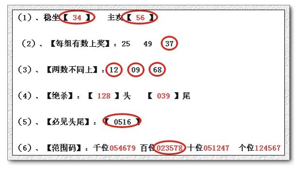 (6)、【范围码】:千位045678 百位025849 十位051649 个位124579