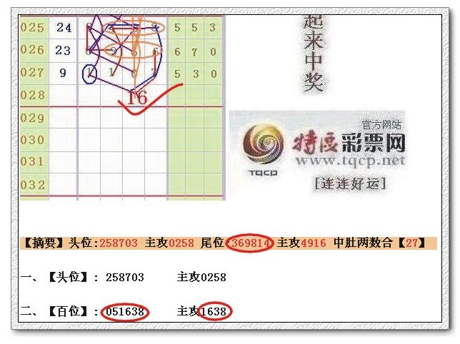 【摘要】头位:051638 主攻1358 尾位:052749 主攻4927 中肚两数合【27】