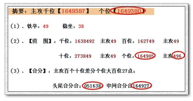 (3)、【合分】:主攻合分百个位合38;头尾合分合051627 ;