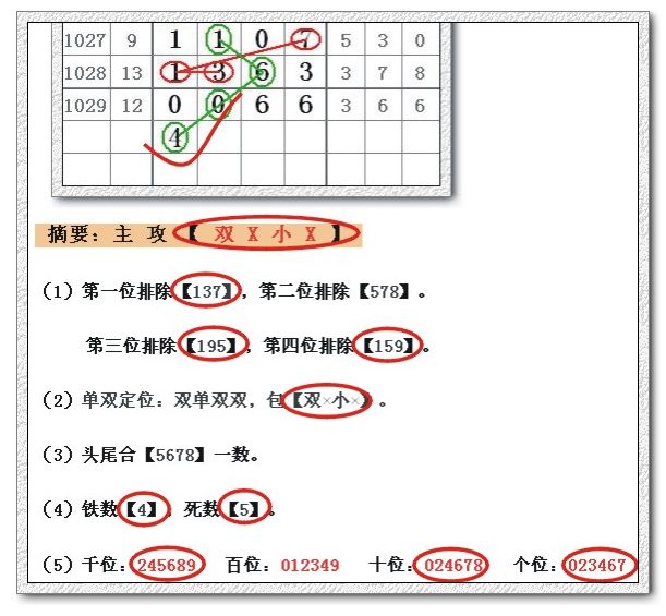(5)千位:025678 百位:041379 十位:046579 个位:023468
