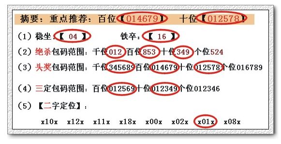 摘要:重点推荐:百位【14568】 个位【23789】