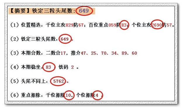 (1)位置精选:千位主攻842防60;百位重点379防48;个位主攻4916防05。