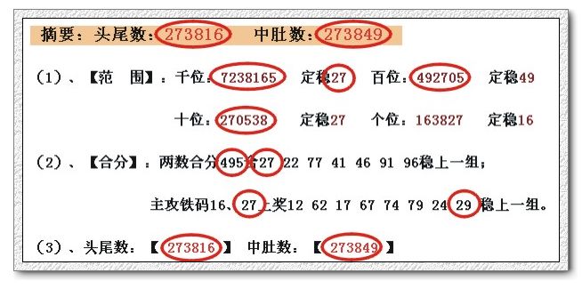 (3)、头尾数:【 164935 】 中肚数:【 273805 】
