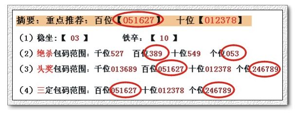 (2)绝杀包码范围:千位032 百位659 十位870 个位719