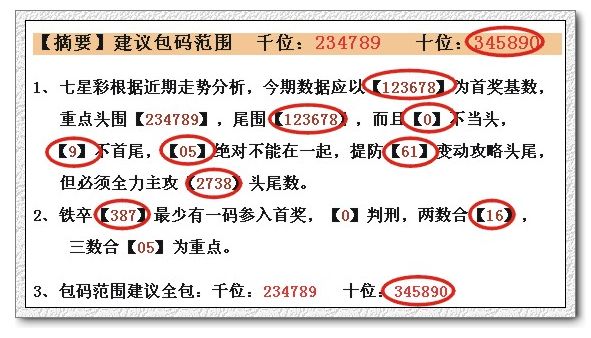 【摘要】建议包码范围 百位:123678 个位:345890