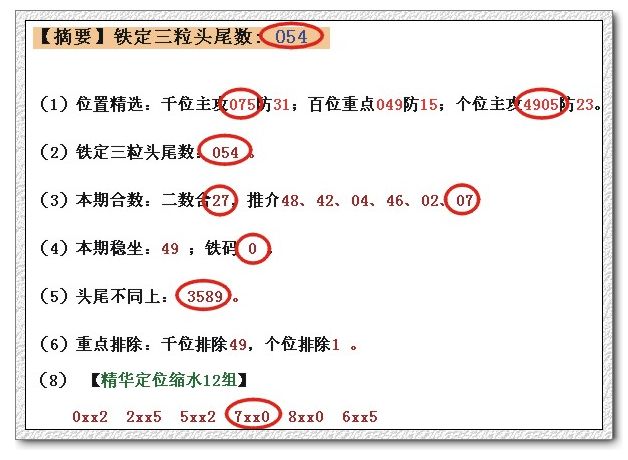 (1)位置精选:千位主攻023防95;百位重点054防97;个位主攻1605防47。