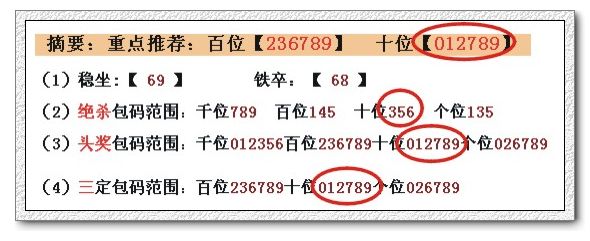 摘要:重点推荐:百位【023469】 十位【346789】