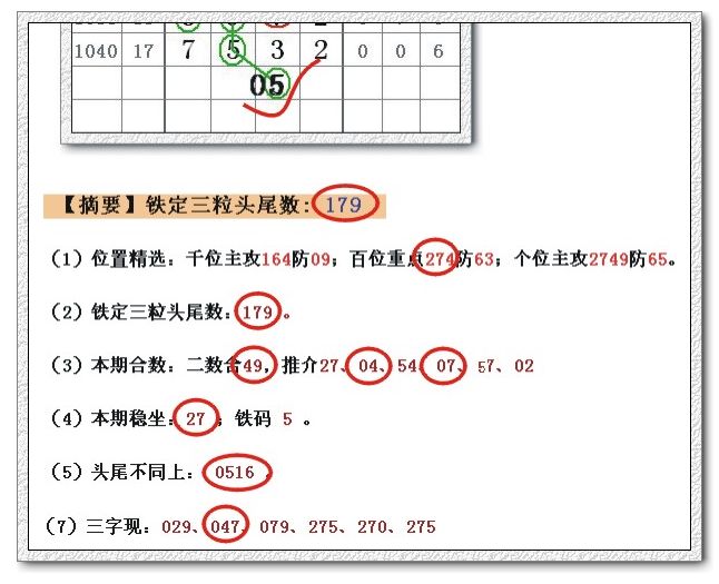 (1)位置精选:千位主攻025防16;百位重点503防84;个位主攻6438防05。