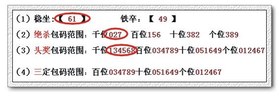 (2)绝杀包码范围:千位349 百位136 十位058 个位136