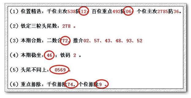 (1)位置精选:千位主攻302防75;百位重点496防12;个位主攻5381防60。