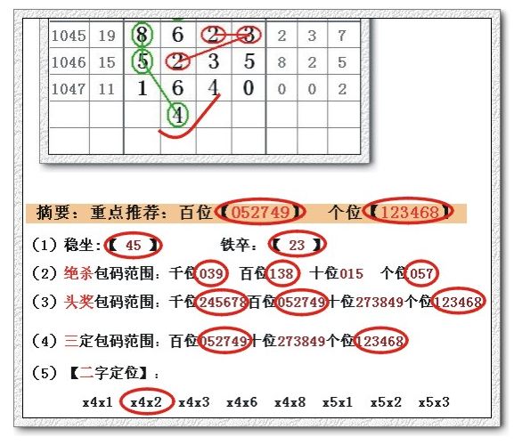 (2)绝杀包码范围:千位489 百位469 十位356 个位012