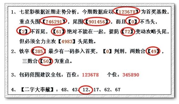 1、七星彩根据近期走势分析,今期数据应以【629147】为首奖基数,