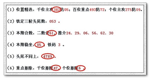 (1)位置精选:千位主攻460防91;百位重点496防50;个位主攻8463防29。