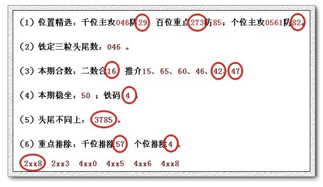 (1)位置精选:千位主攻016防53;百位重点249防37;个位主攻4789防02。