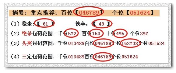 (2)绝杀包码范围:千位567 百位378 十位389 个位049