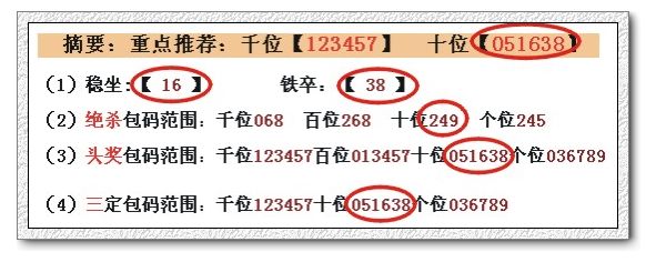 (2)绝杀包码范围:千位269 百位368 十位129 个位015