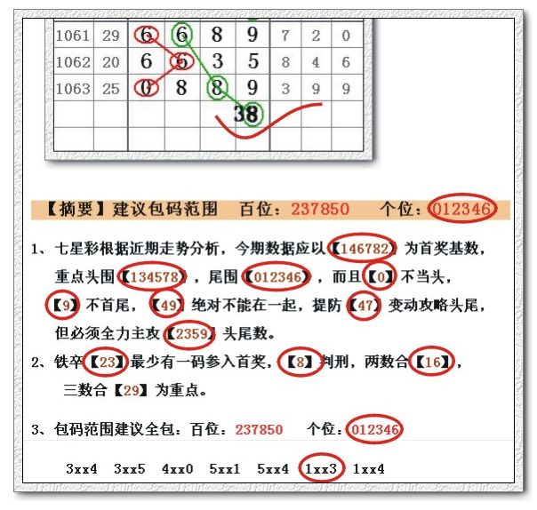 1、七星彩根据近期走势分析,今期数据应以【634975】为首奖基数,
