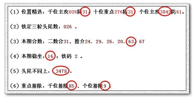 (1)位置精选:千位主攻349防80;百位重点367防02;个位主攻1649防38。