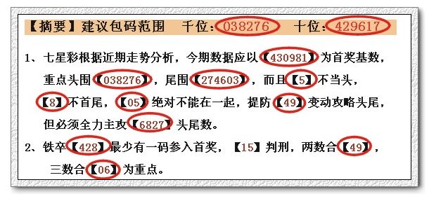 1、七星彩根据近期走势分析,今期数据应以【258703】为首奖基数,