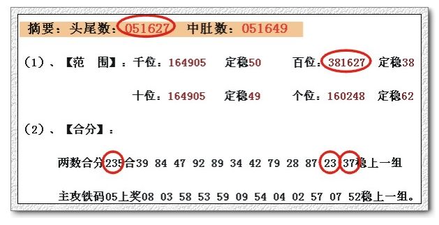 (3)、头尾数:【 052749 】 中肚数:【 051638 】