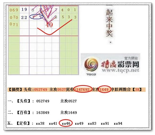 一、【头位】: 052749 主攻2579