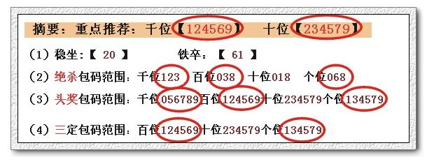 (2)绝杀包码范围:千位278 百位346 十位237 个位259