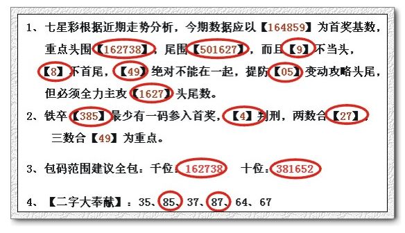 1、七星彩根据近期走势分析,今期数据应以【369814】为首奖基数,