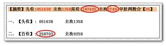 【摘要】头位:051638 主攻0516尾位:147692 主攻2679 中肚两数合【38】