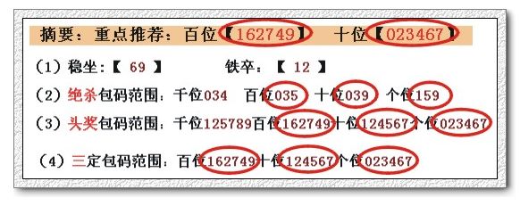 (2)绝杀包码范围:千位149 百位139 十位469 个位158