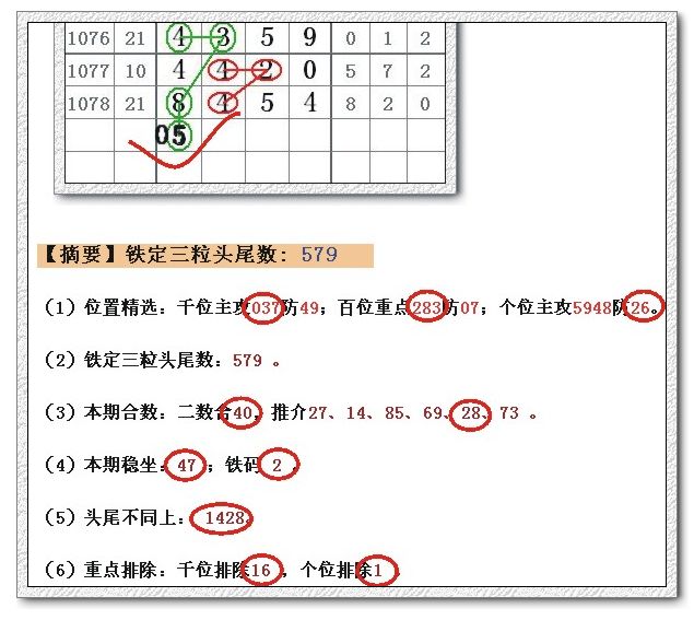 (1)位置精选:千位主攻734防05;百位重点493防85;个位主攻4935防18。