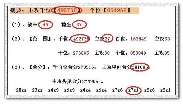 十位:052749 主攻49 个位:053972 主攻95