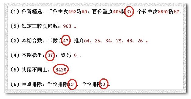 (1)位置精选:千位主攻503防89;百位重点246防75;个位主攻3894防67。