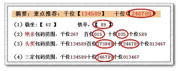 (2)绝杀包码范围:千位163 百位267 十位174 个位279